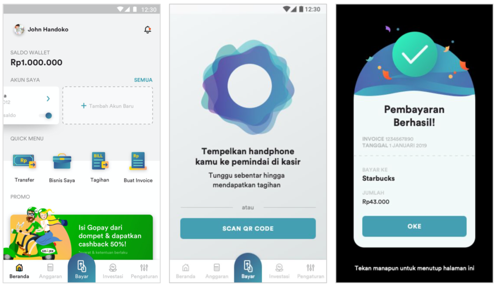 • Do payment (merchant payment or bill payment)