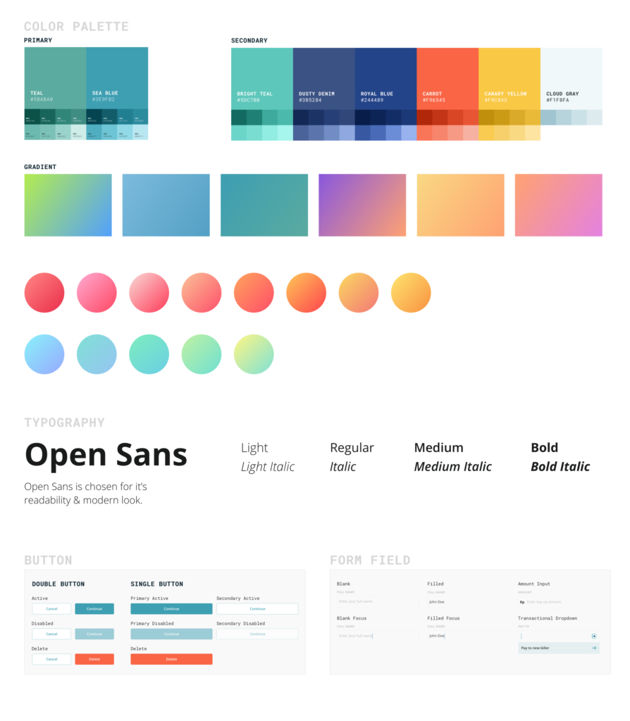 While the research team work on the user research, the design team helped the client to define the design system used for the new product.